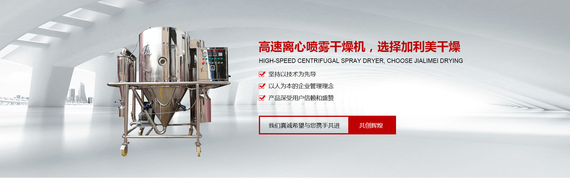 常州市加利美干燥設備有限公司是從事噴霧干燥機,閃蒸干燥機,雞精生產線和制粒機械的研究、開發及制造的專業性廠家,是目 前國內生產干燥設備品種較多、規格較全的企業。 我公司吸收國內外的先進技術與經驗,嚴格按國家GMP的要求設計、開發、生產、安裝和服務于一體,同時嚴格按照ISO9001國際質量體系標準實施,確保了產品質量。在干燥設備的開發、研究中不斷地創新及改造,設計制造了一系列工藝進步且節能的產品。